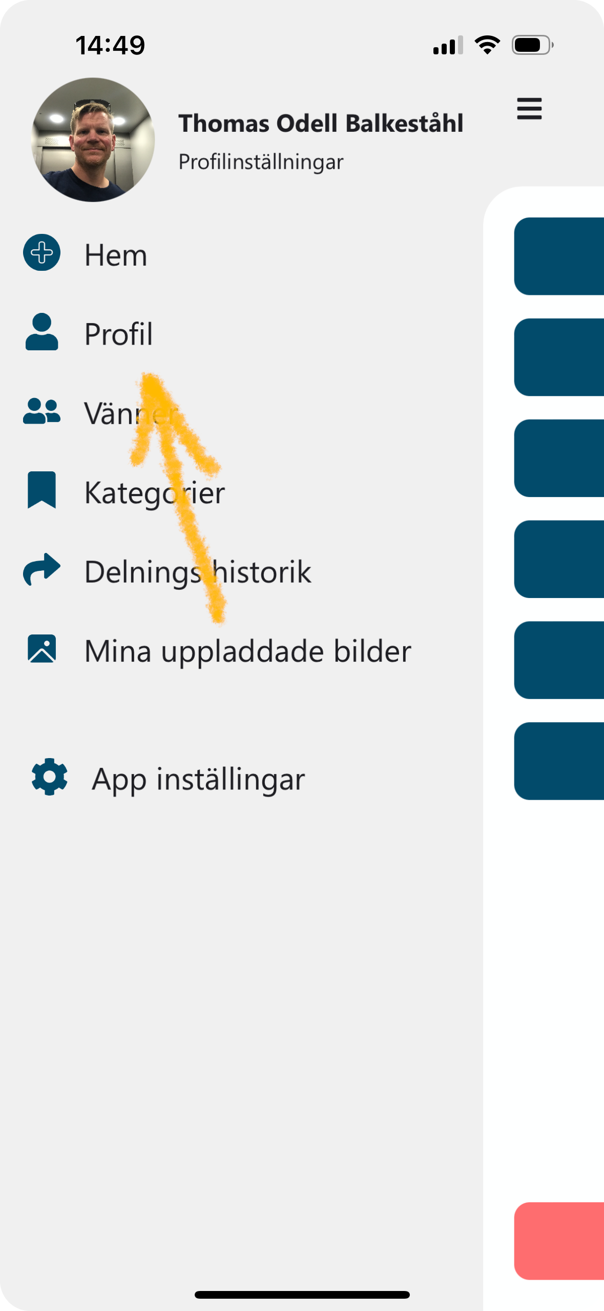 Du kommer åt den genom att gå till Inställningar eller swajpa höger och sedan välja Profil.