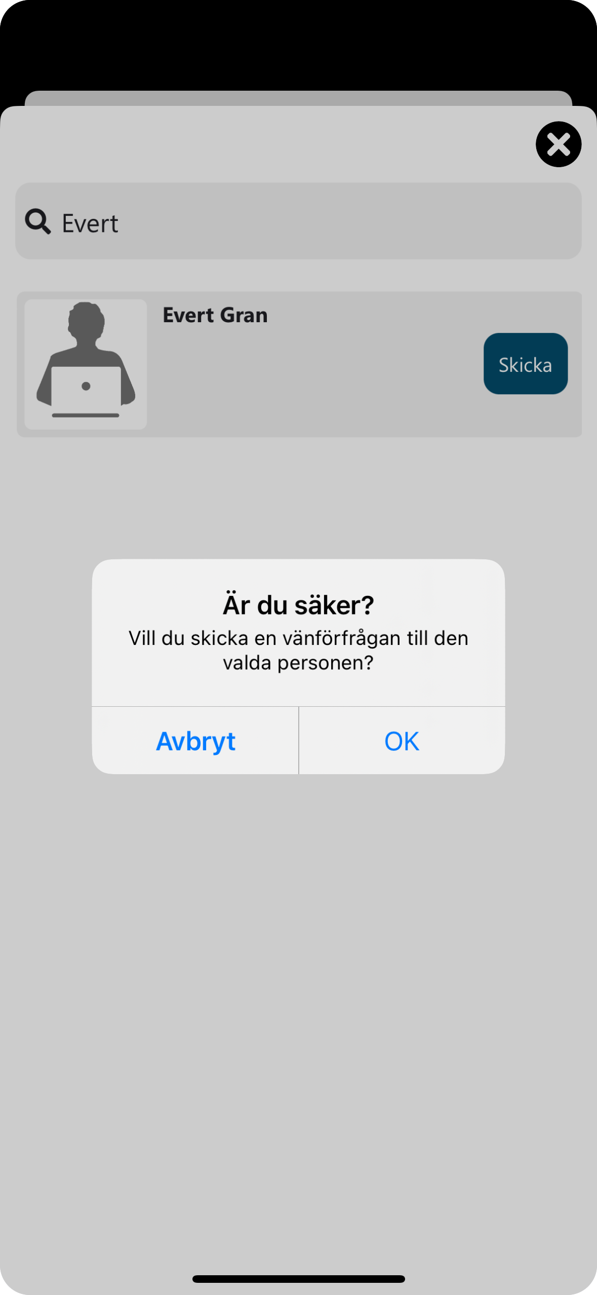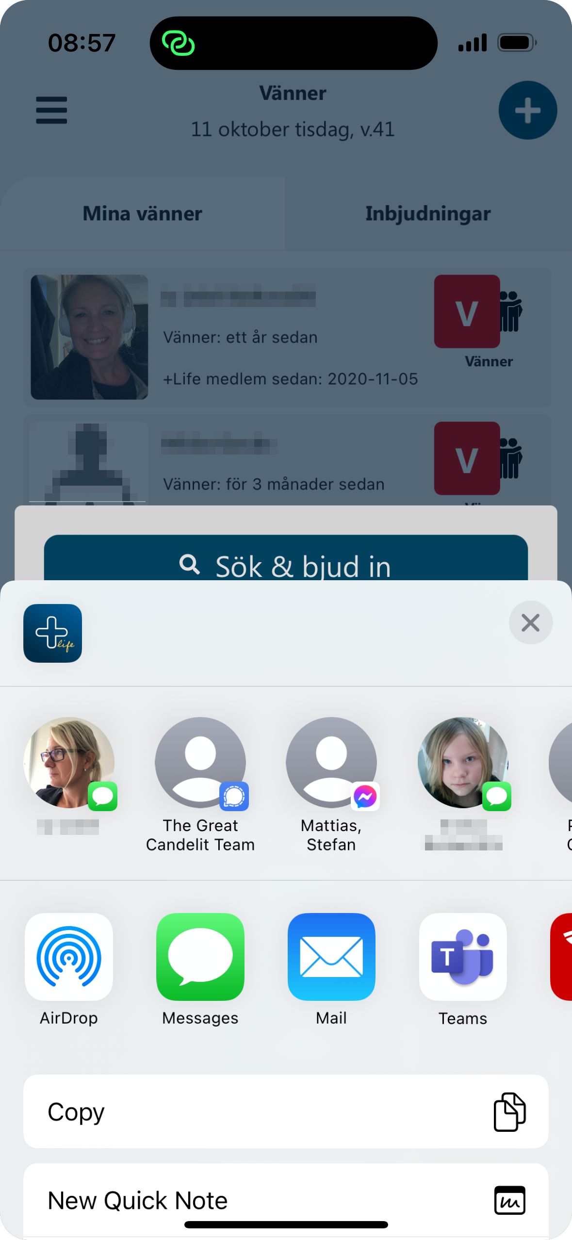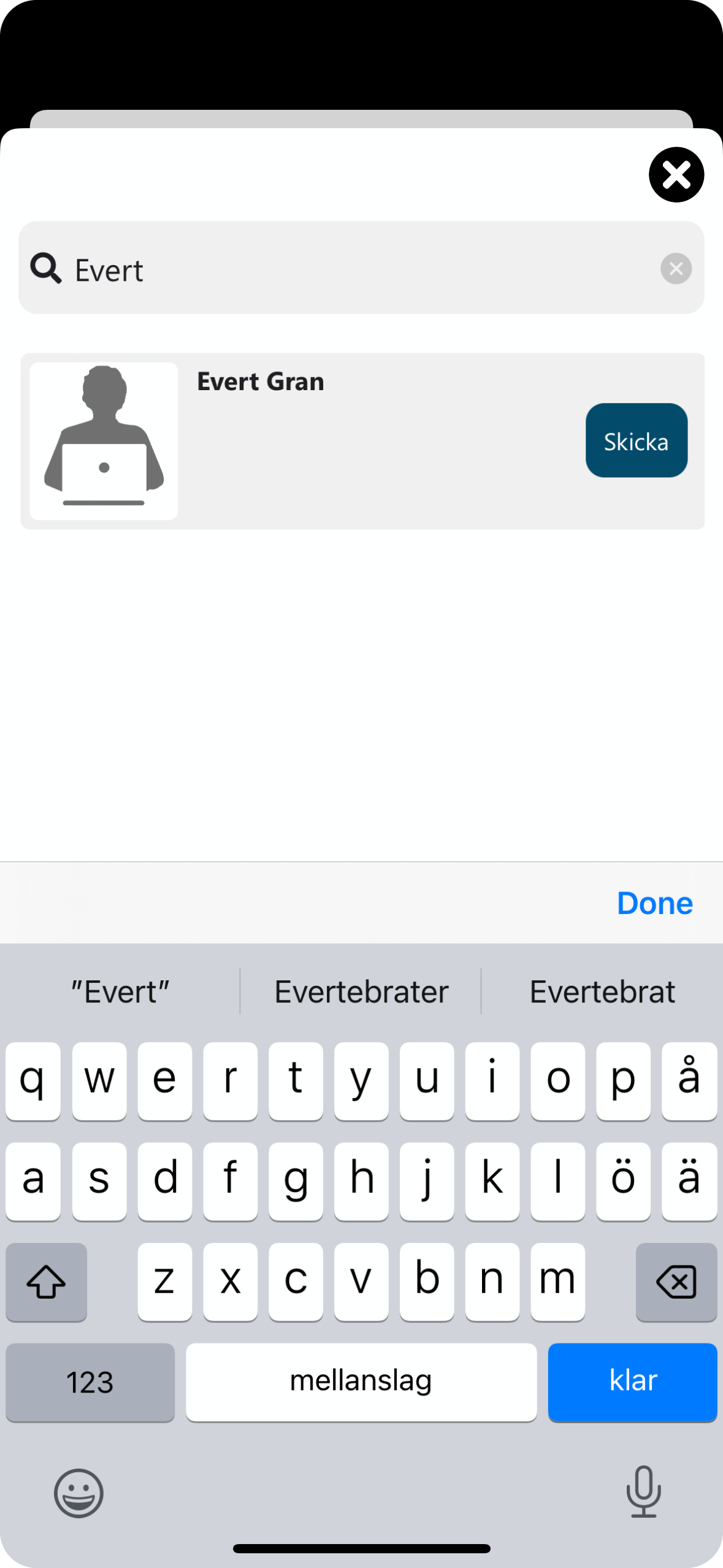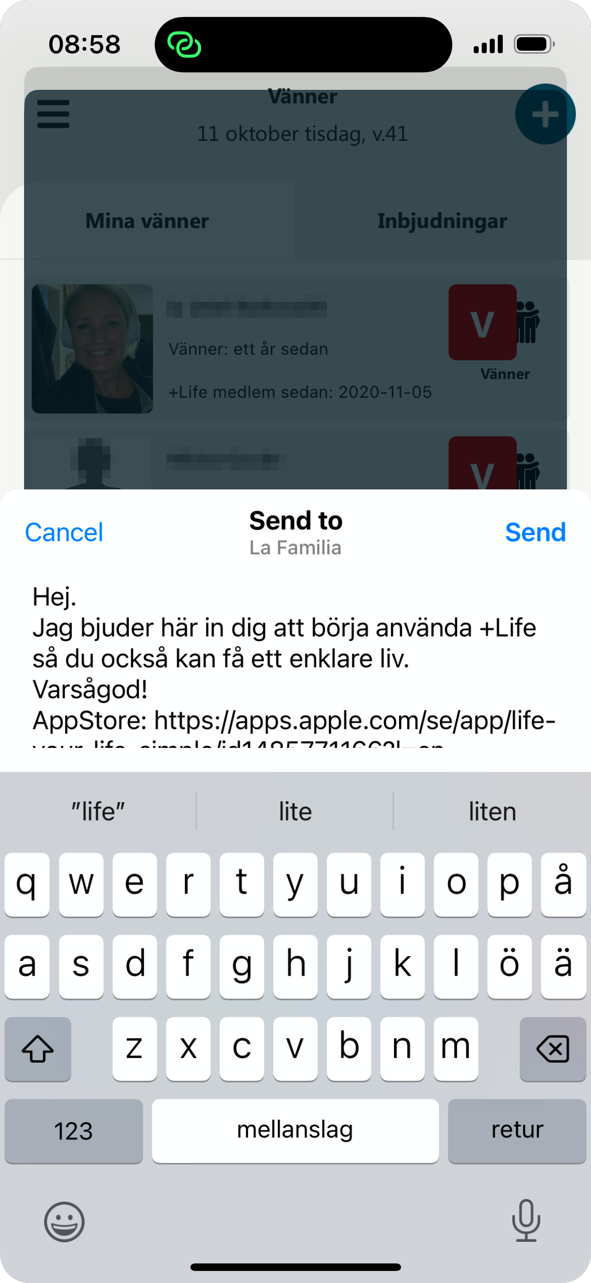 (Här skickar du länken till en ny användare eller grupp, som får länken till AppStore eller Google Play)