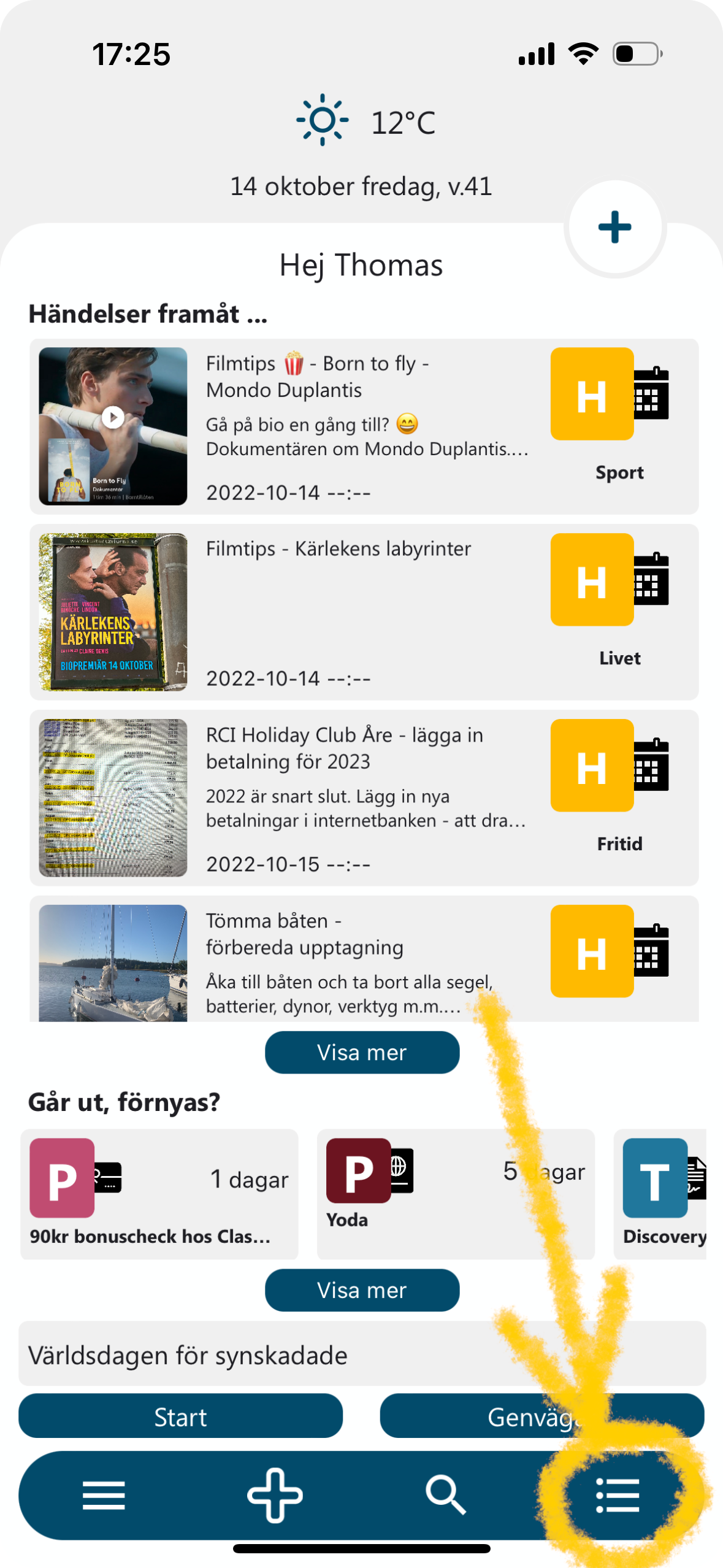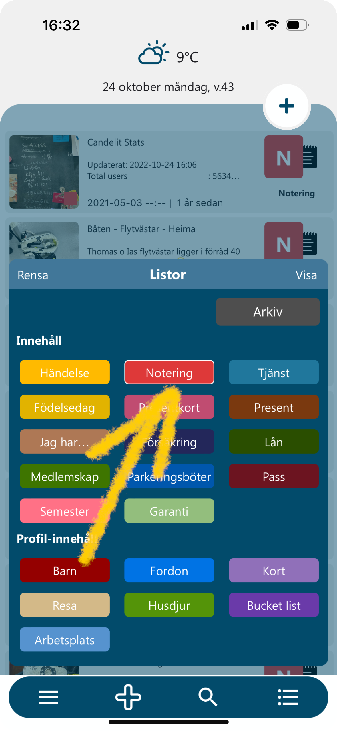 Du når allt ditt innehåll i Pluslife via olika former av listor.