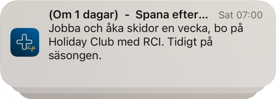 Slutligen kommmer du få en liten push om du satt ett datum då du ska ha genomfört något på din bucketlist.