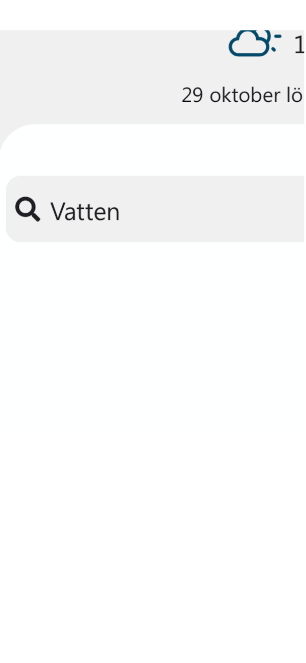 Då går du till söksidan, skriver in 'vatten' som sökord, sökresultatet visas automatiskt medan du skriver.