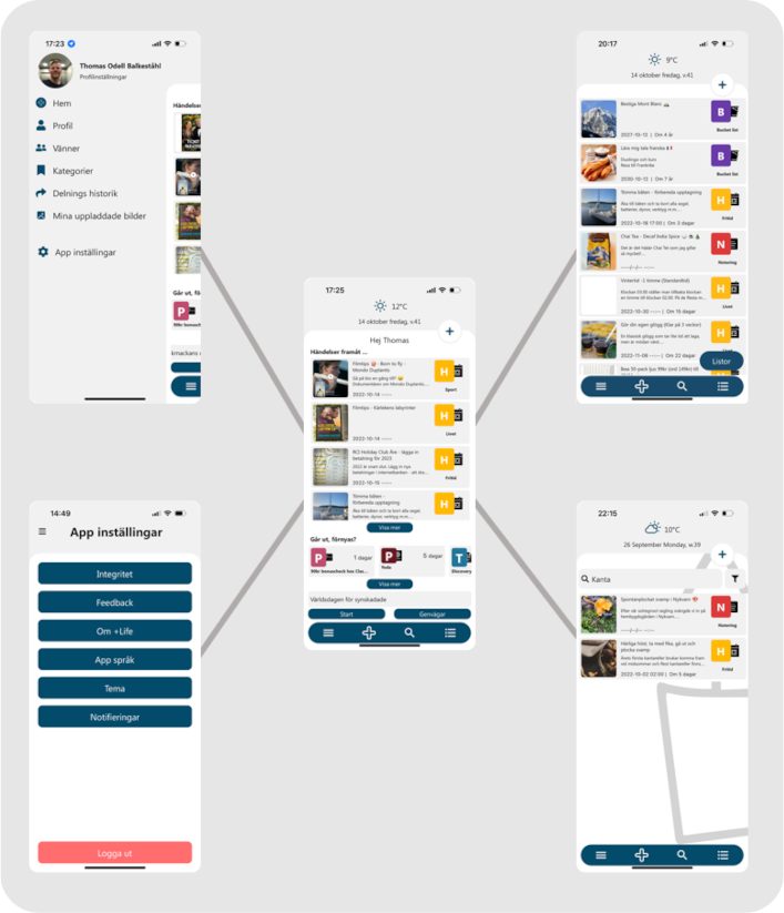 Gränssnittet i Pluslife är består av några grundområden.